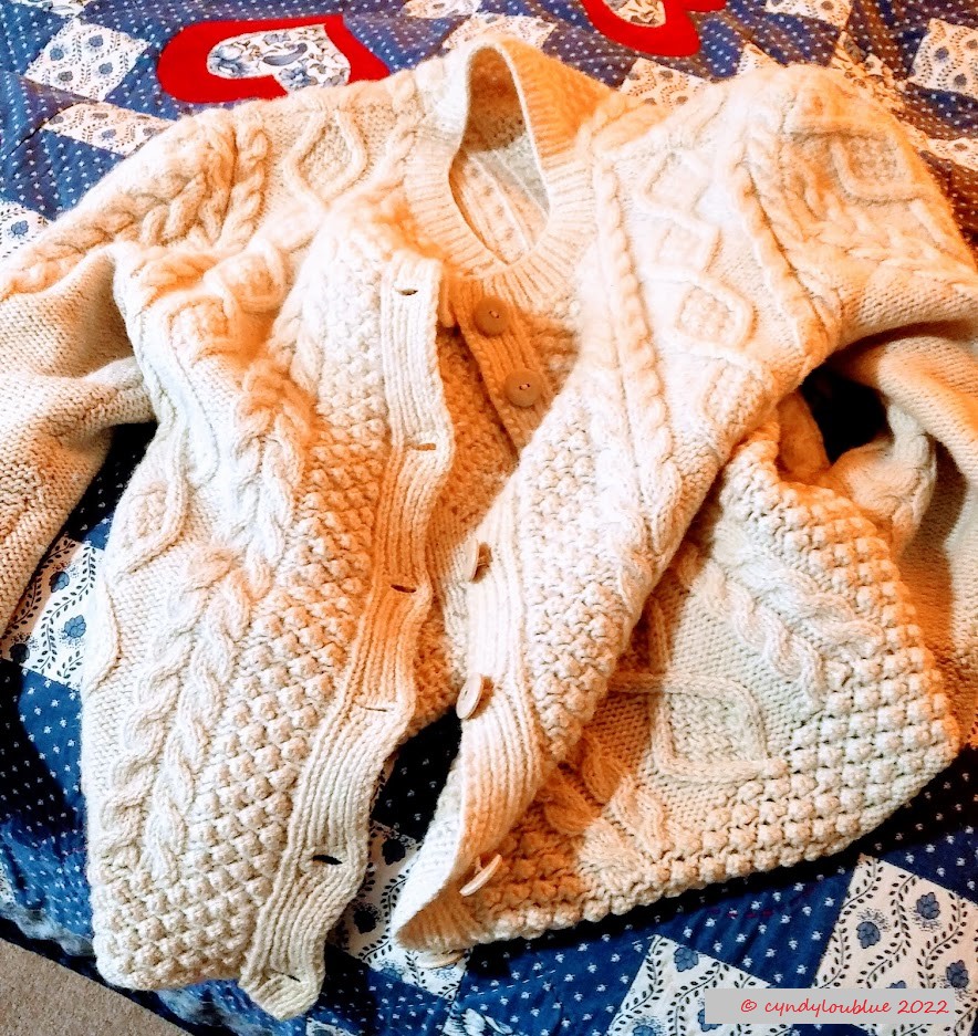 That’s a lovely story. How are you getting on knitting a new cream cardigan…???