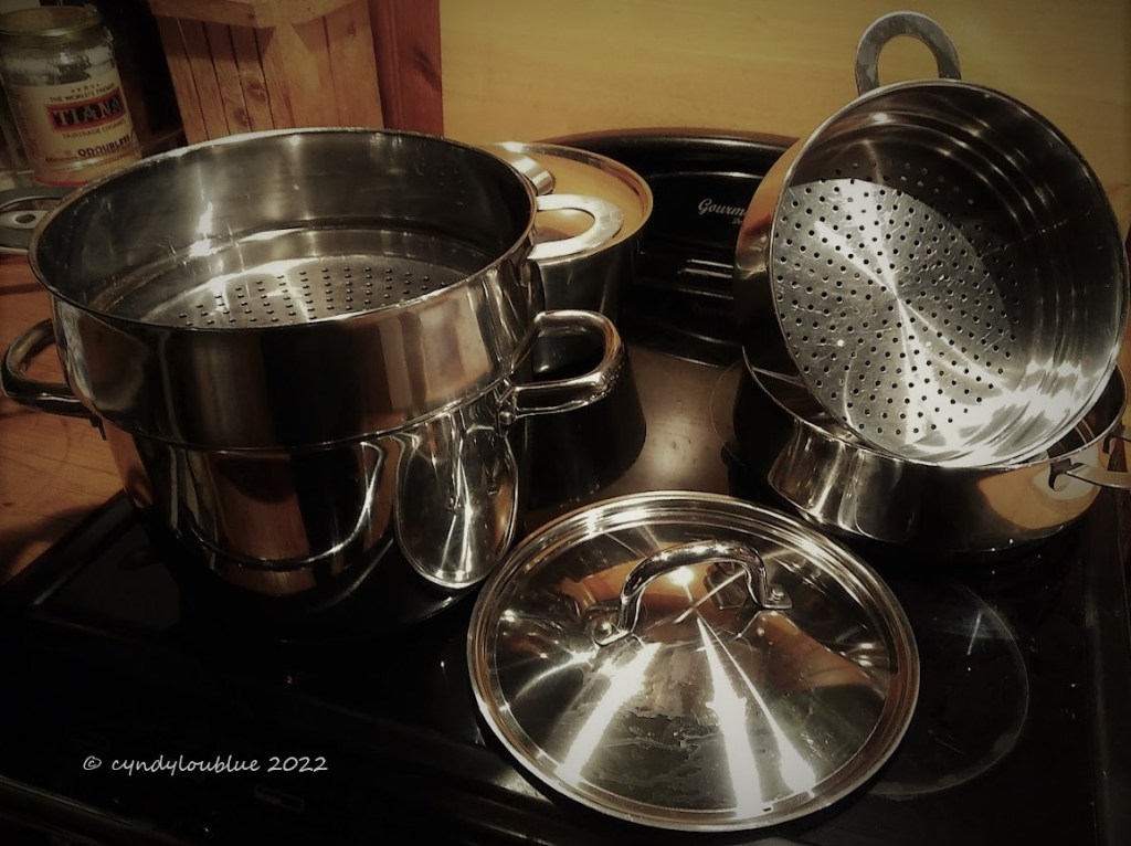 These came in two sizes and the layering baskets could all be bought separately. You could build your set as finances allowed. It is good quality stainless steel, not flimsy at all and the sections all have a good seal when they are stacked up so they don’t let too much steam escape from the sides during the cooking process. Before I found this one, I had invested rather more money than was wise in something from a well known company that was utter rubbish. A lot more steam escaped into the kitchen than found its way into the food. Note to self- read the reviews before impulse purchase.
