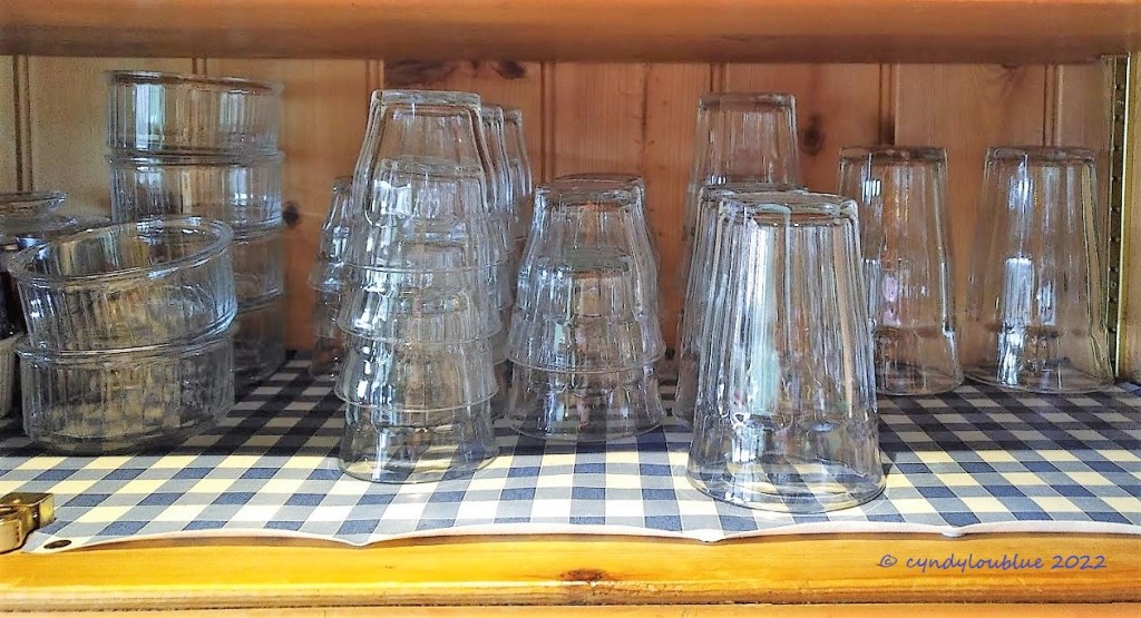 I love the glassware in my cupboard now. As with so many of you I am sure, we had reached that point in our life when the cupboard was full of patchwork families, of half sets of this and that, orphans, and hand-me-downs. There was a part of me that thought that getting rid of them all was somehow not living up to my “not wasting things” beliefs and values. But then one day, I dropped something and it smashed into an unbelievable amount of tiny slivers of razor sharp glass. What seemed like hours of vacuuming followed. The most dangerous types of thin glassware were wrapped and binned and the rest was taken to the charity shop in case someone needed just one or two of something.