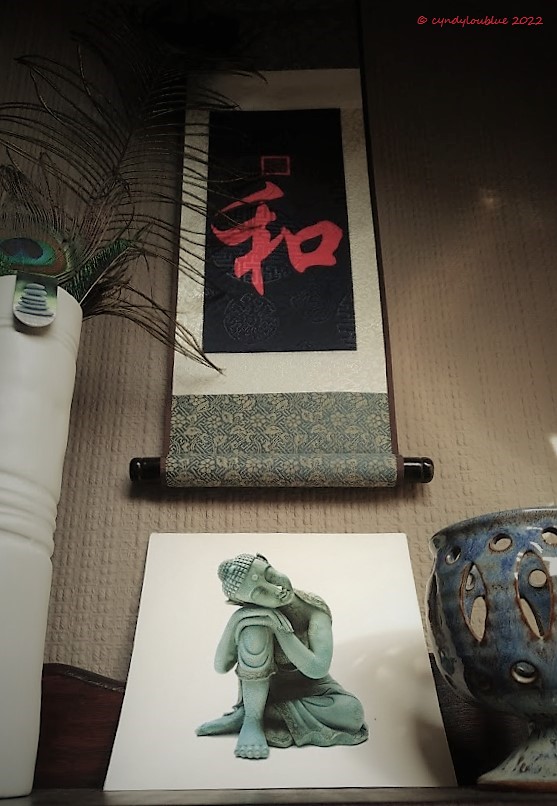 The Chinese character in the scroll says simply, “Peace”.