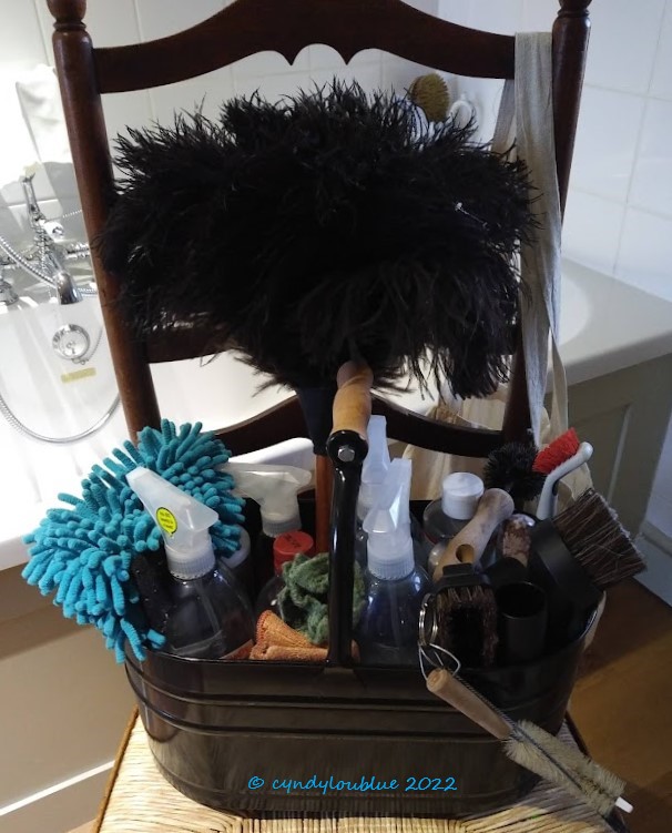 So, the theory is that after each room is thoroughly cleaned in the Spring Clean, they are then maintained by a regular, general clean on a weekly basis. Some things need doing daily and, when I am in the groove with it all, that can take about 20 minutes and include: bed made and bedside tables cleared and dusted, kitchen tidied and floor swept (sink cleaned and work surfaces cleaned after each meal), duster run over the main horizontal surfaces that are most seen, middle of floors run over with G tech sweeper, toilets spruced and sinks cleaned. This keeps it all what my Grandmother would call “presentable”. “You never know when unexpected company might knock at the door.”
