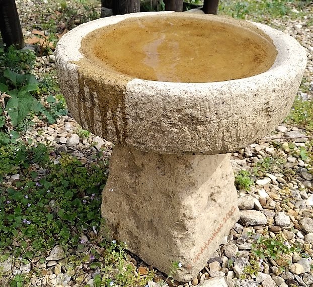 Certain jobs in the garden are not really jobs. They are pleasures. I work consistently to keep the bird bath cleaned and filled with fresh water from the water butts. And MY birds know it is there. It is the hottest ticket in town…if you are a bird.